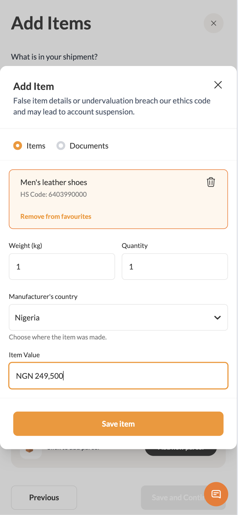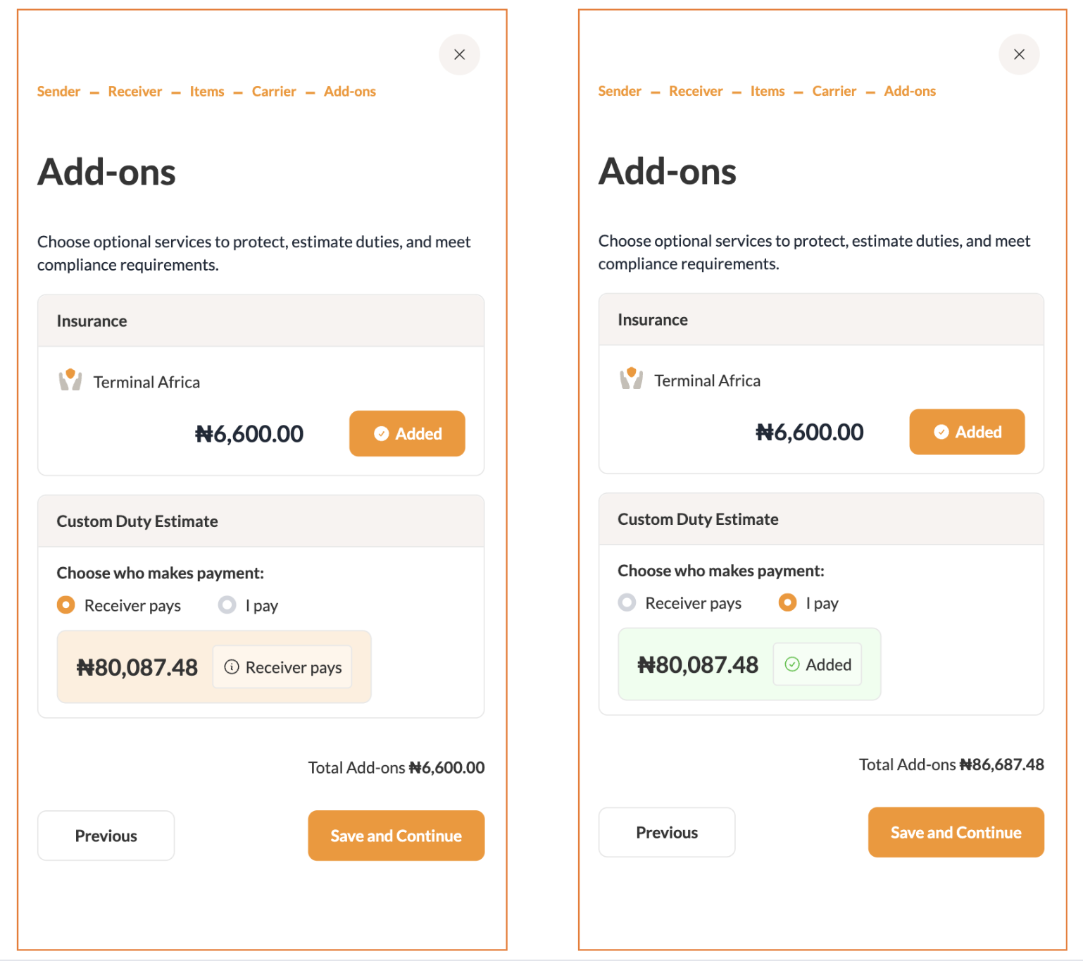 Terminal Africa now provides an estimated customs duty fee for every international shipment. This helps you plan better and avoid surprises when your package arrives in the destination country.