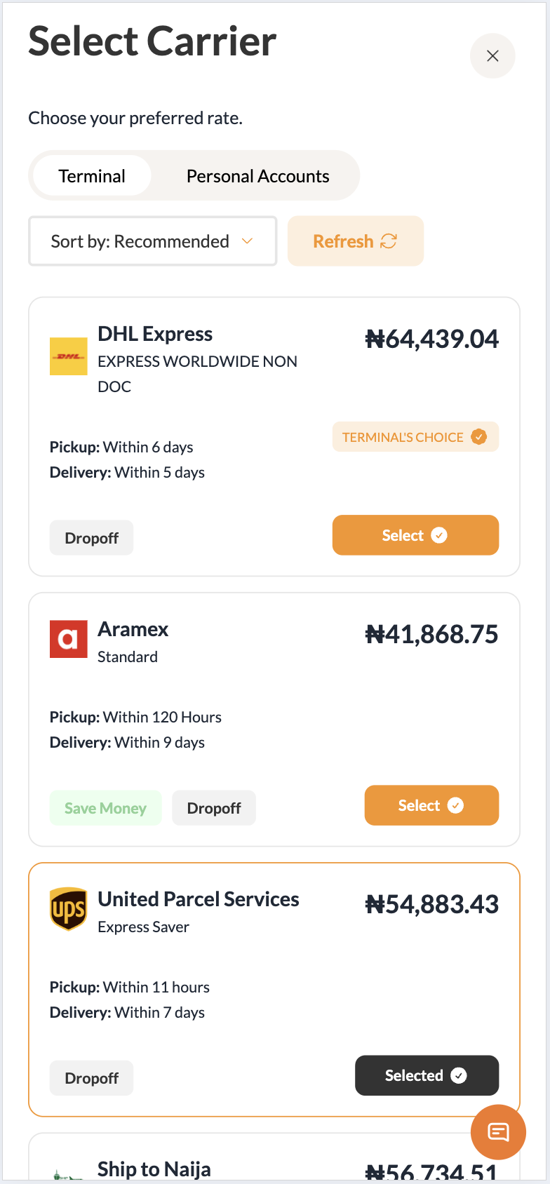 - Choose the carrier you prefer based on speed, price, or reliability.